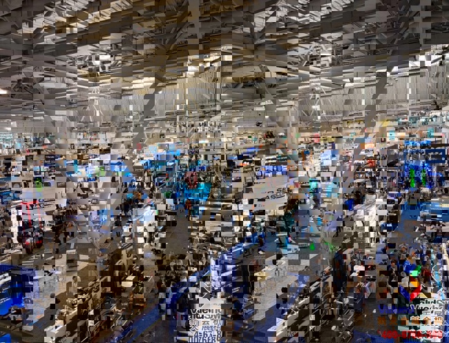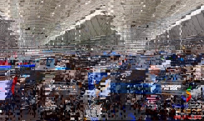 展会开幕当天一大早,展馆门口就已经排起了长队。根据主办方公布的数据,今年展会总面积达到247,915平方英尺,共有来自50个国家的1,215家参展商亮相。